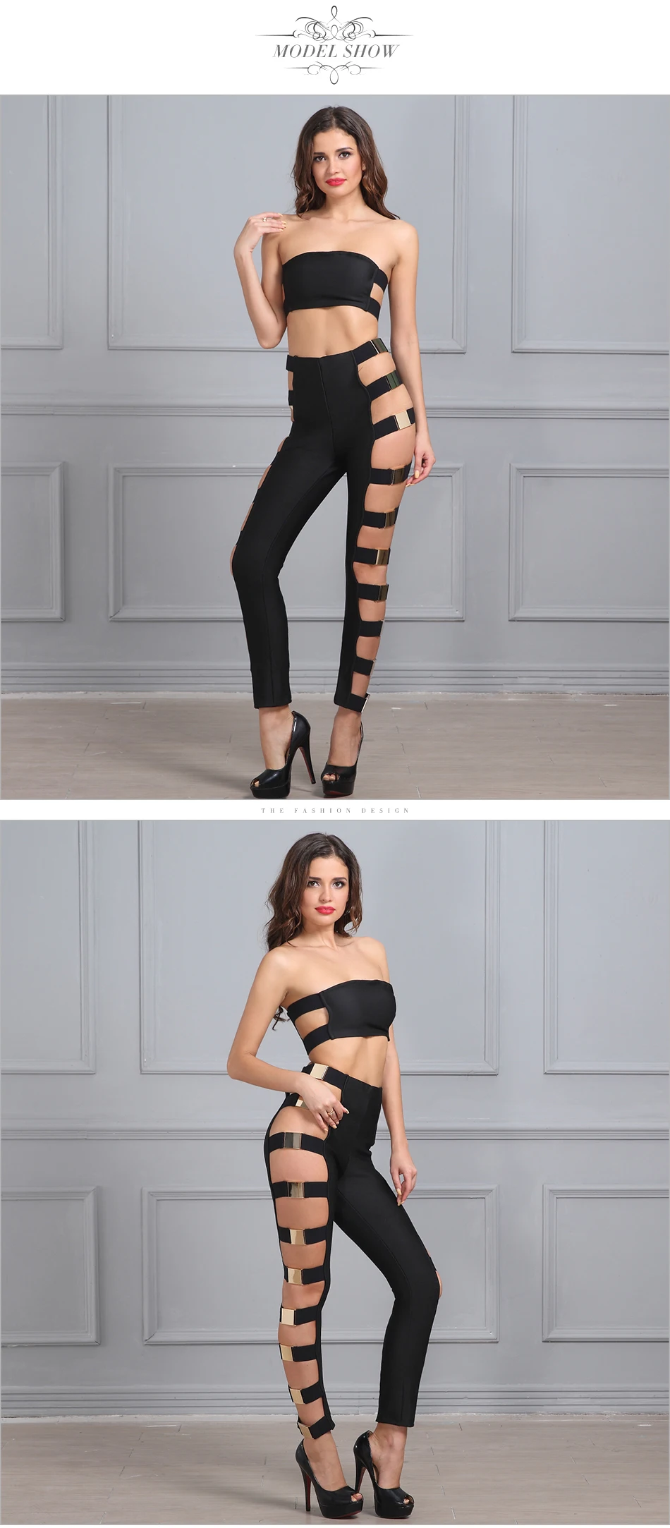 Adyce 2017 New Women Summer Bandage Two Pieces Set Black White Hollow Out Short Top&Ankle Length Pants Celebrity Runway 2 pieces