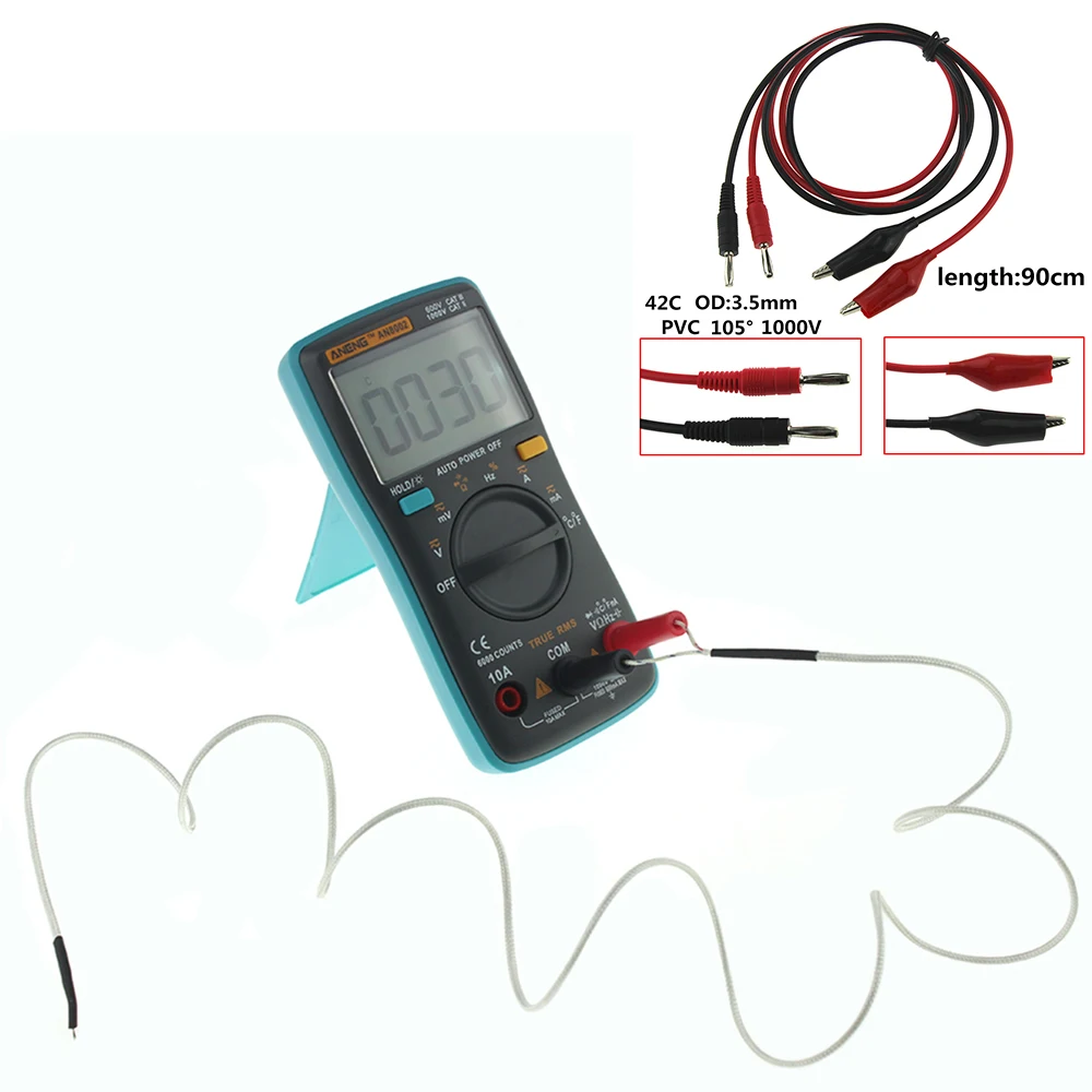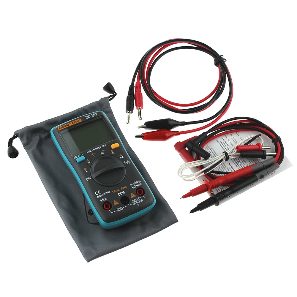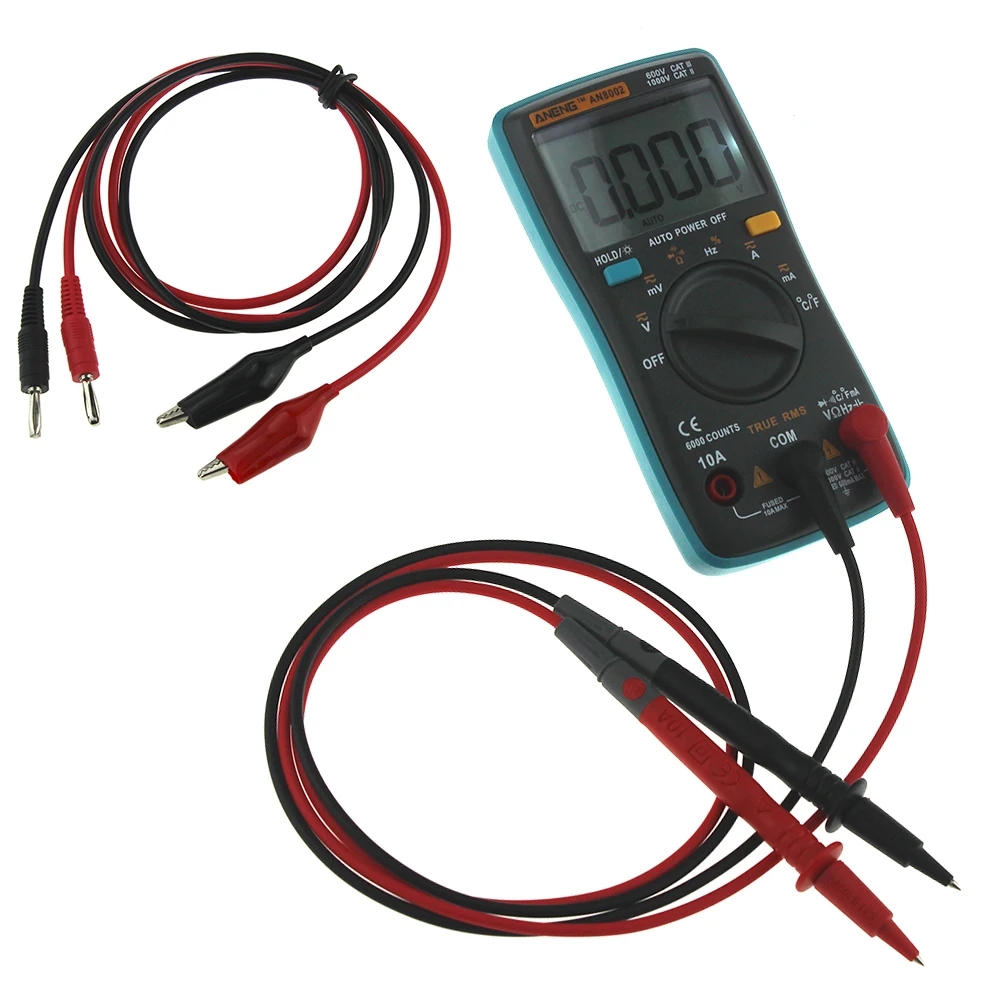 ANENG AN8002 Digital Multimeter 6000 counts Backlight AC/DC Ammeter Voltmeter Ohm Alligator clip jumper wire test lead