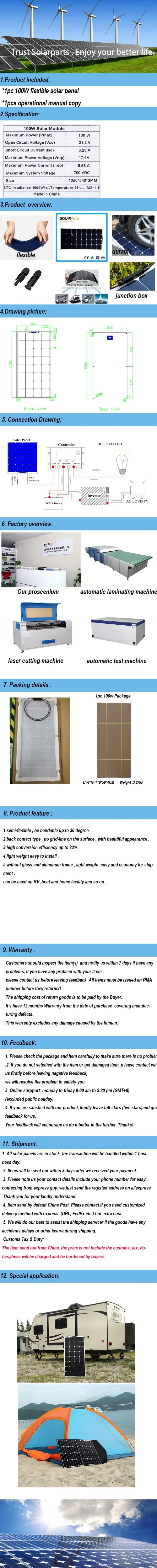Boguang 100W flexible solar panel 12V solar cell/module/system RV/car/marine/boat battery charger LED Solar light kit