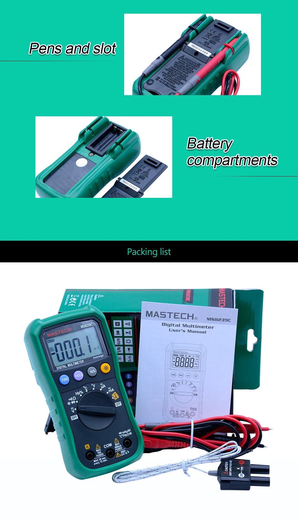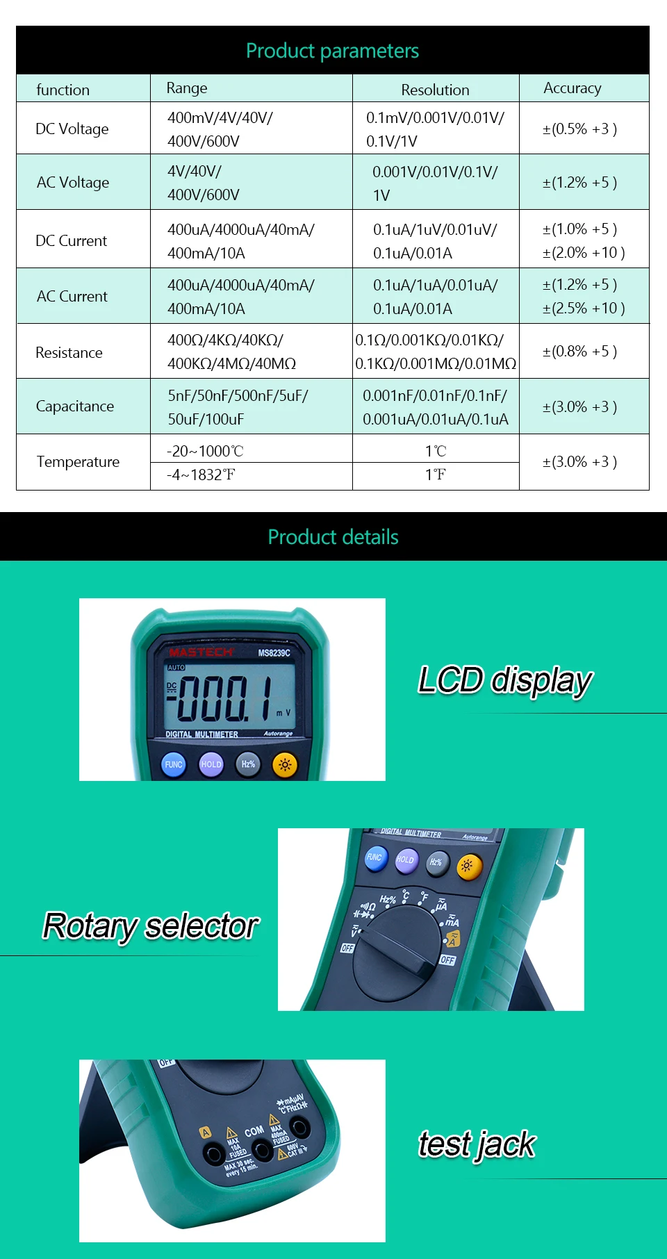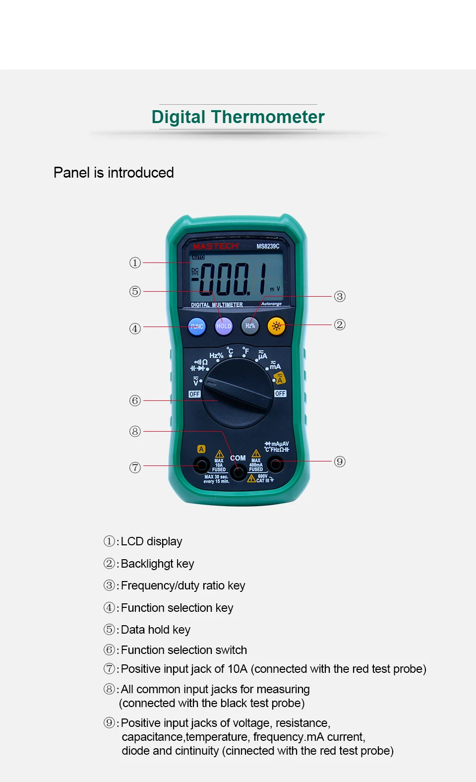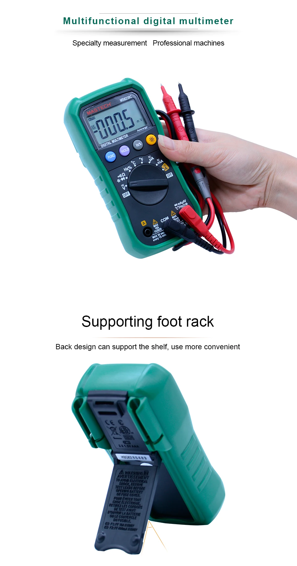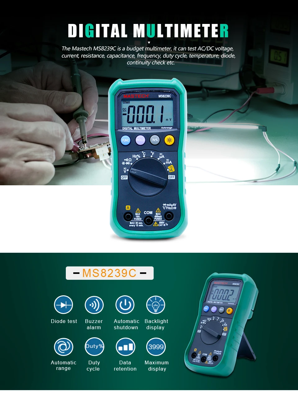 Digital Multimeter MASTECH MS8239C AC DC Voltage Current Capacitance Frequency Temperature Tester Auto range 3 3/4