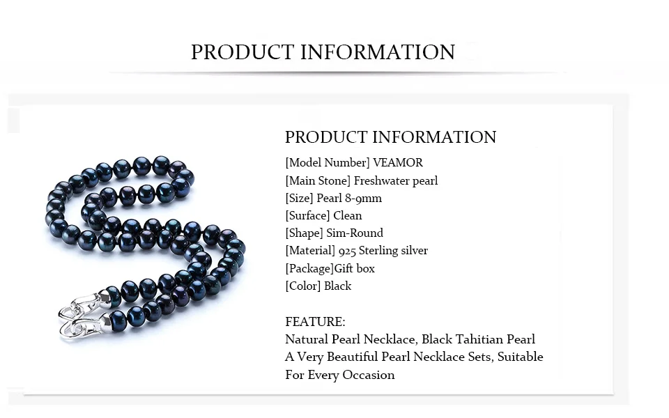 High Quality Pearl Necklace Natural 8-9MM Black Pearl Necklace Natural Pearl Choker Necklace for Women Classic Pearl Jewelry