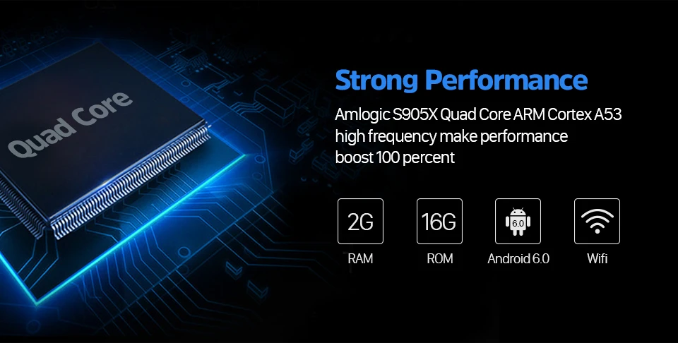 - Amlogic S905X Quad Core ARM Cortex-A53