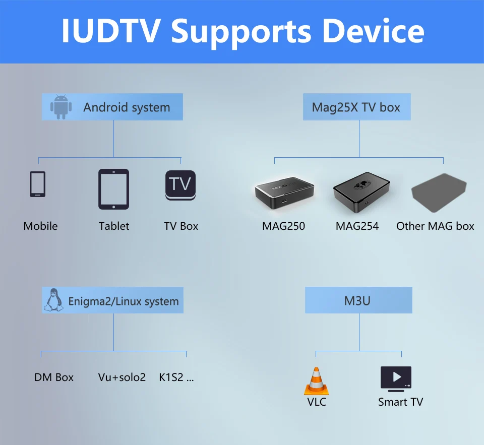 - IUDTV have a lot of IPTV channels, for better watching the net speed should be more than 8Mbps.