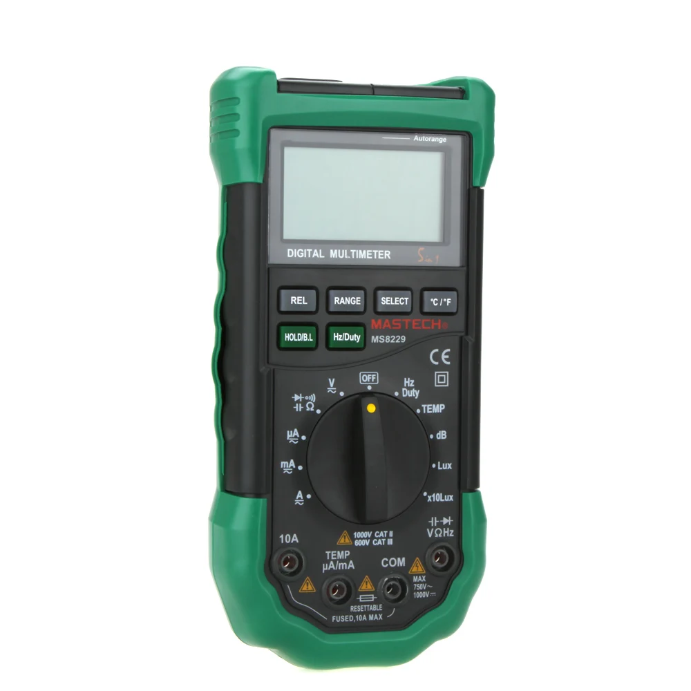 MASTECH MS8229 Digital Multimeter 5 in 1 Noise Illumination Temperature Humidity Tester Diagnostic-tool Auto Range LCD Backlight