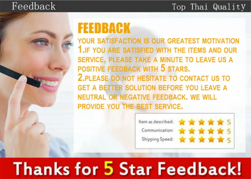 Don’t forget to give us a 5 stars feedback if you are satisfied with our products and service. And feel free to contact our staffs if you have any questions about the products. We believe that you will get a satisfied answer.