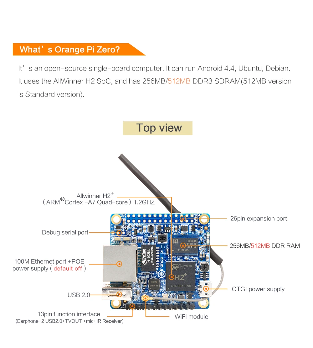 Orange Pi Zero H2 Quad Core Open-source 512MB development board beyond raspberry pi