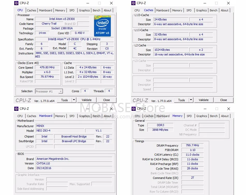 | General | Model: MINIX NEO Z83-4 Type: Mini PC Color: Black |