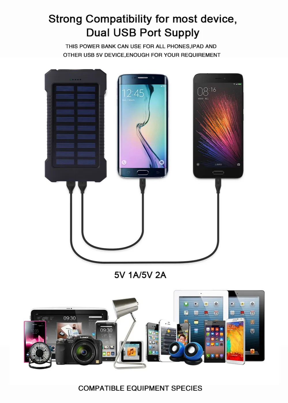 Output: Dual USB DC5V-1.0A/ DC5V-2.1A