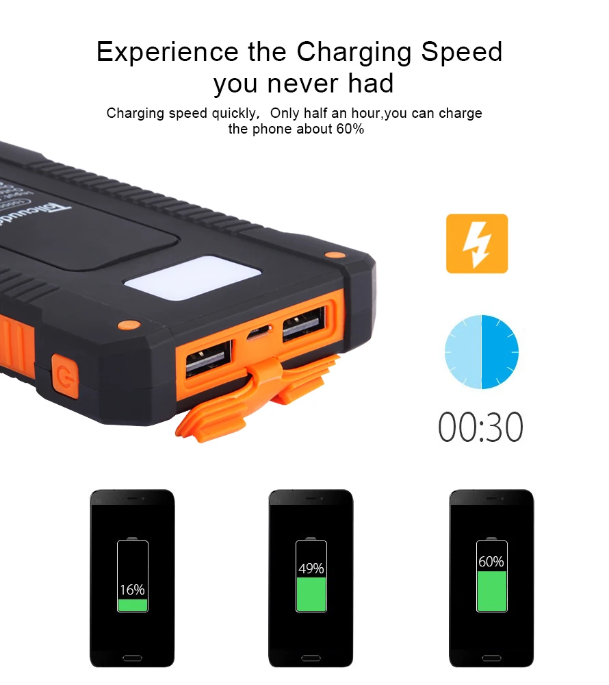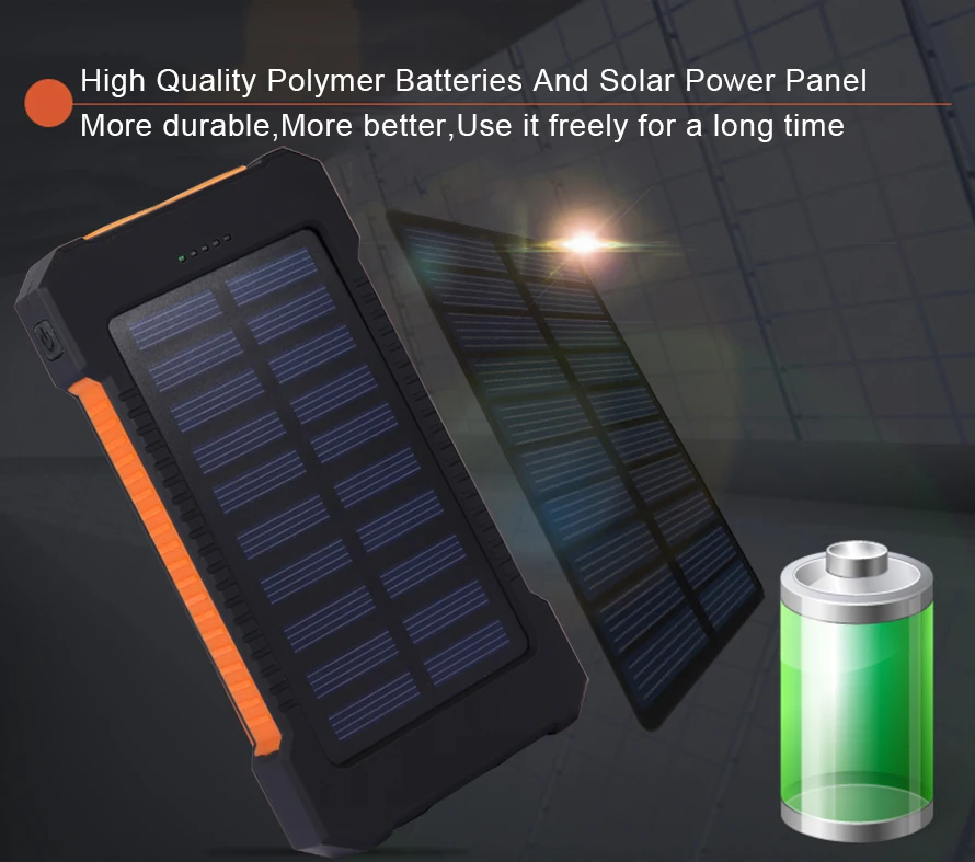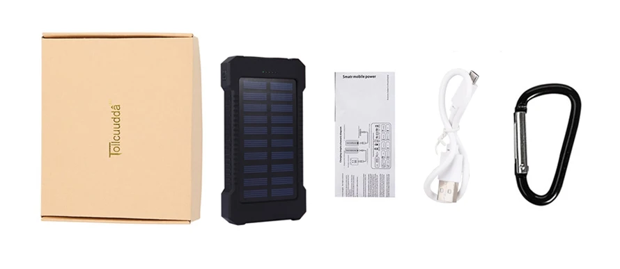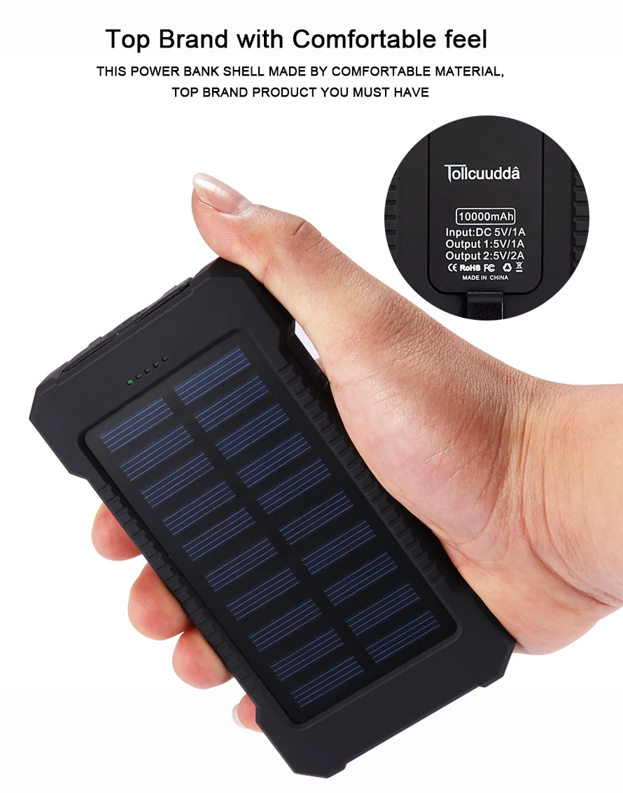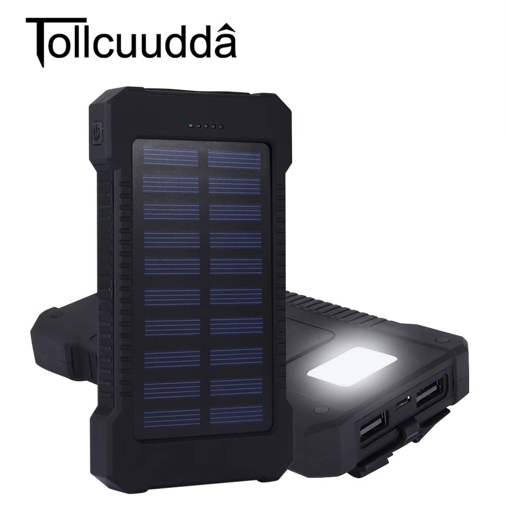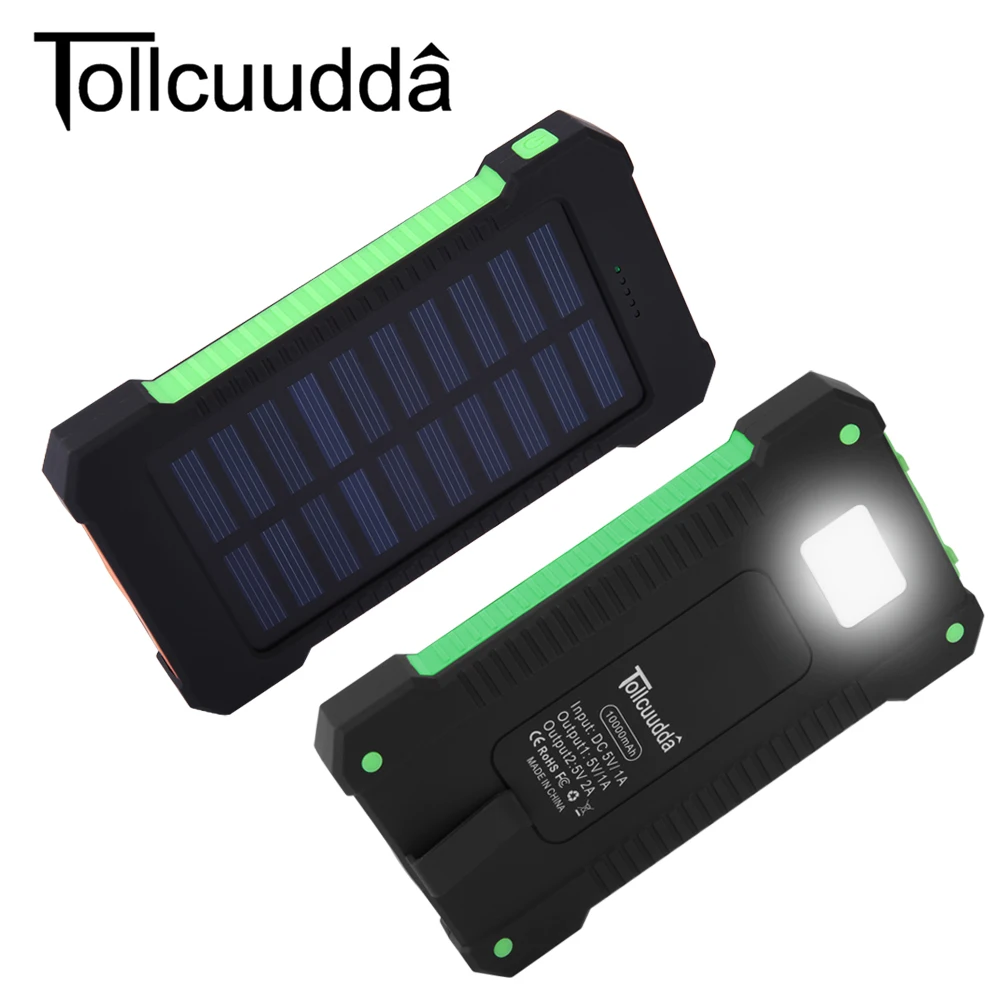 Tollcuudda Outdoor Travel hiking 10000mAh Portable Solar Charger Dual USB Battery Power Bank Waterproof For Samsung iPhone Phone