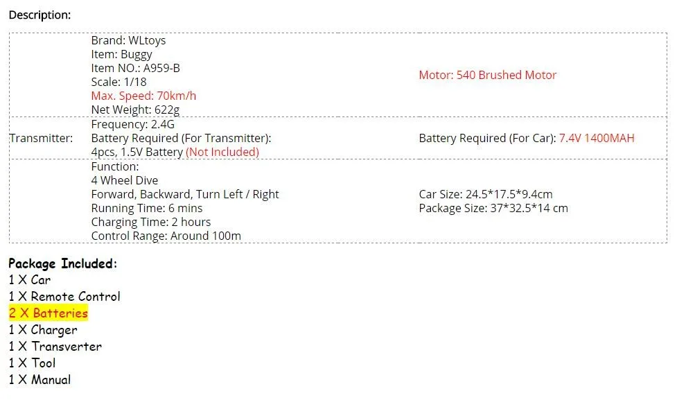 wltoys A959-B remote radio control electronics rc car 1/18 2.4G shockproof Rubber plastic wheels buggy Highspeed Off-Road 4wd