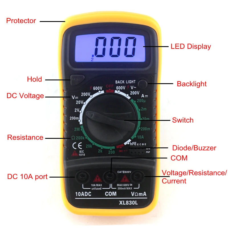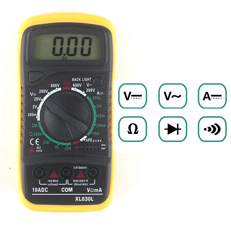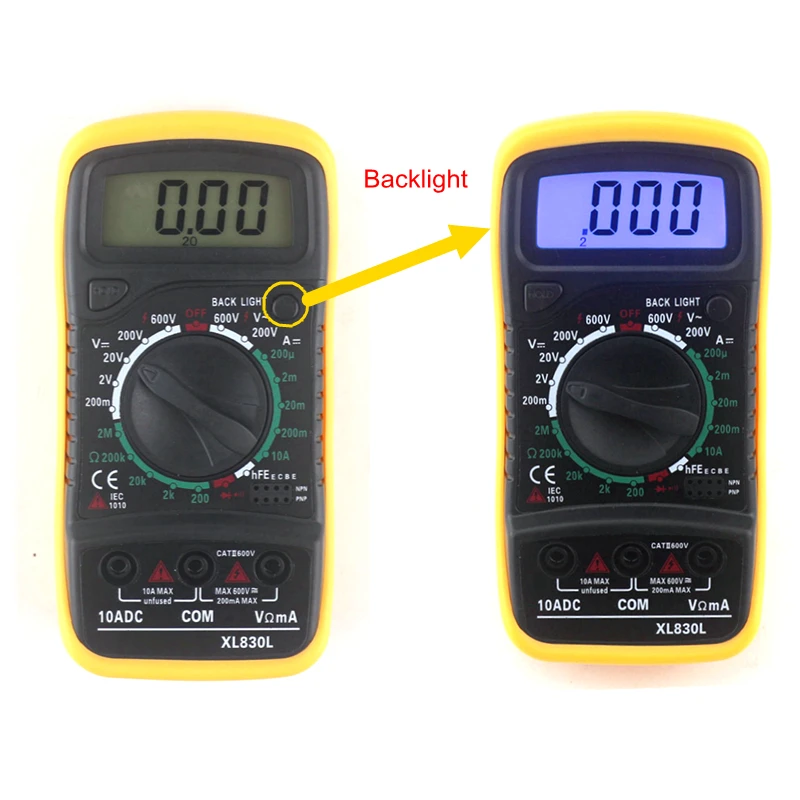 XL830L Digital Multimeter Portable Multi meter AC/DC Voltage Amp Current Resistance Tester Meter Blue Backlight
