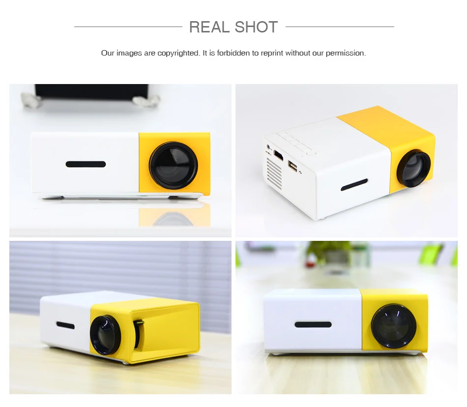 YG300 Photo Studio Backgrounds Projector Portable LCD Camera & Photo Video Home Cinema Media Player W/ HDMI /SD/USB White Yellow